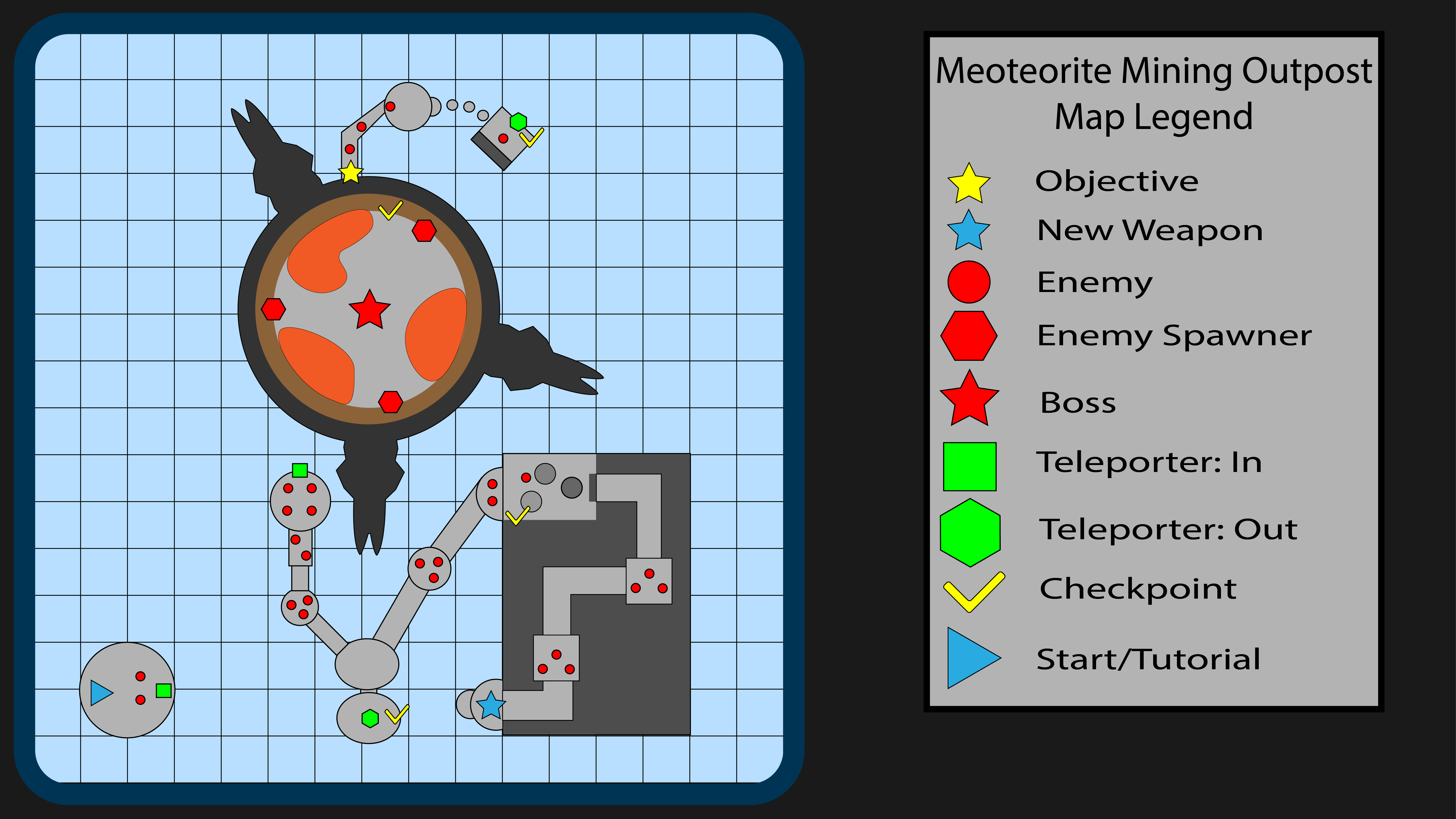 The image above is a guide for white-boxing, so a basic 3D level layout can be quickly made including basic stand ins for enemies, important items, and architecture.